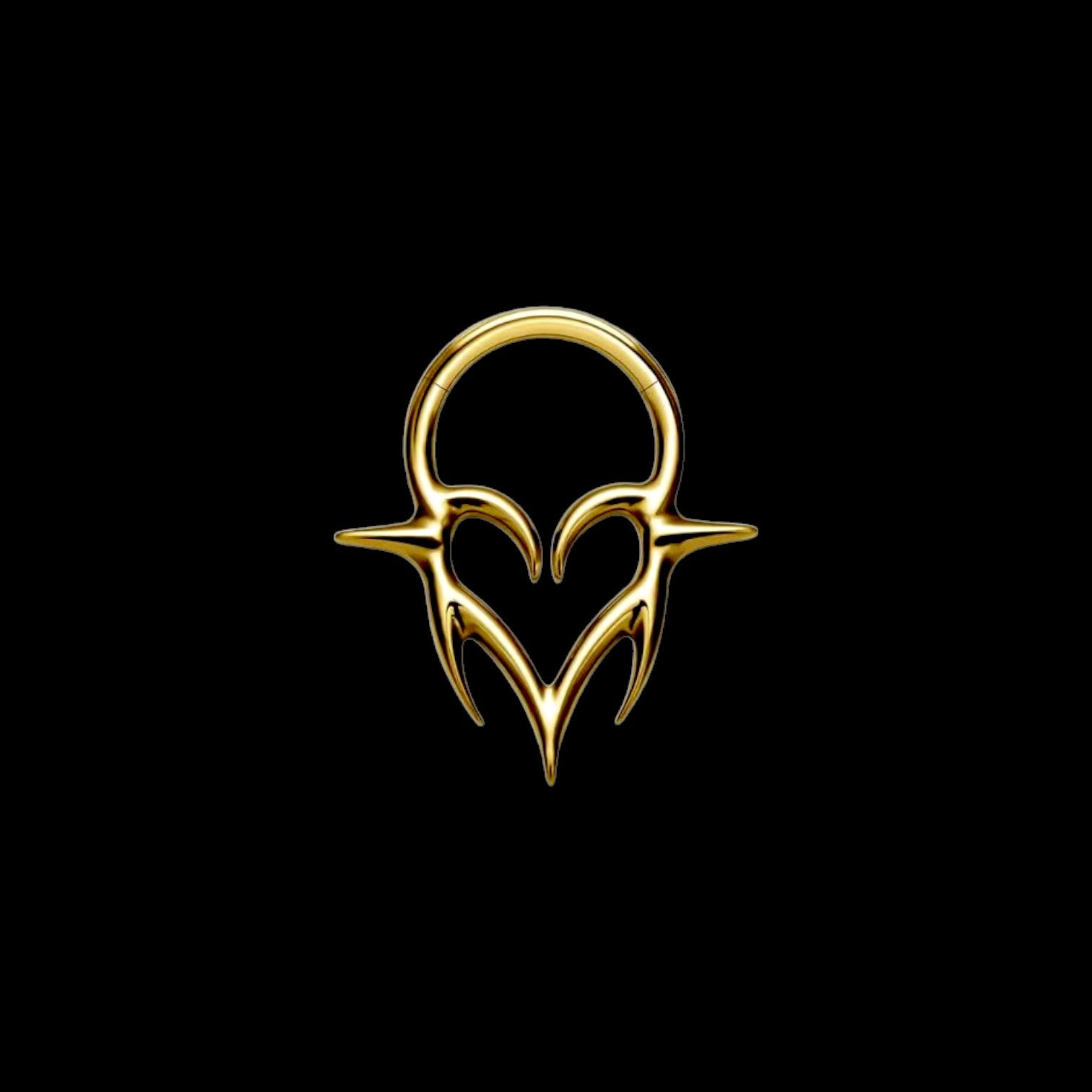 Der Tribal Heart Septum Clicker vereint Tribal-Vibes mit einem Hauch von Romantik. Sein kunstvolles, herzförmiges Design mit detaillierten tribalähnlichen Verzierungen macht ihn zu einem echten Eyecatcher – perfekt für alle, die Tradition und Individualität miteinander verbinden möchten.